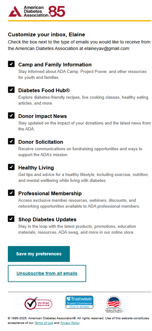 [hopefully] preventing constituents from opting out of ALL emails from the ADA